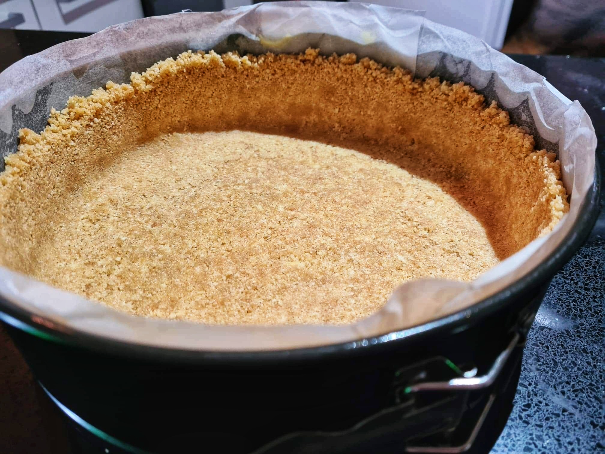The biscuit base may be a little delicate at his stage, it will firm up during the cooking process.