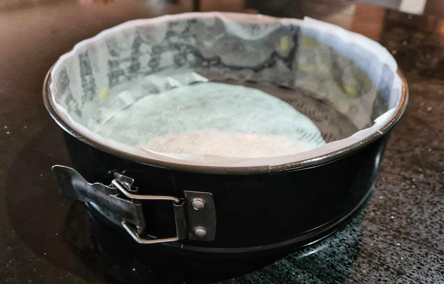 Tap the bowl on the bench to remove any unwanted air from the mixture, you will see the bubbles rising as you do this, Pour into prepared base.